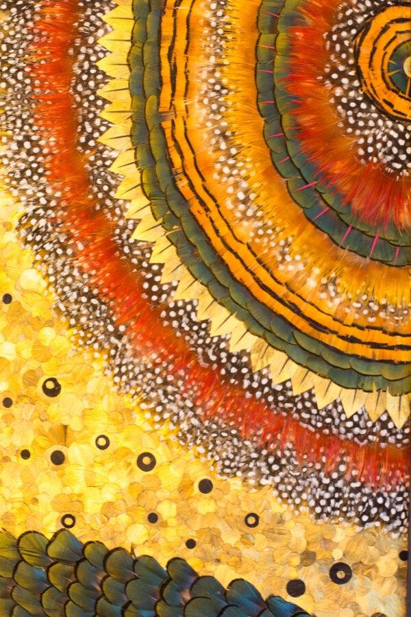 Par un travail de répétition et d’assemblage, la plume crée un rythme organique où formes et couleurs entrent en résonance.