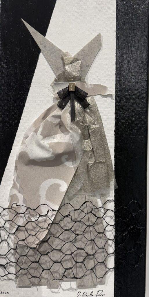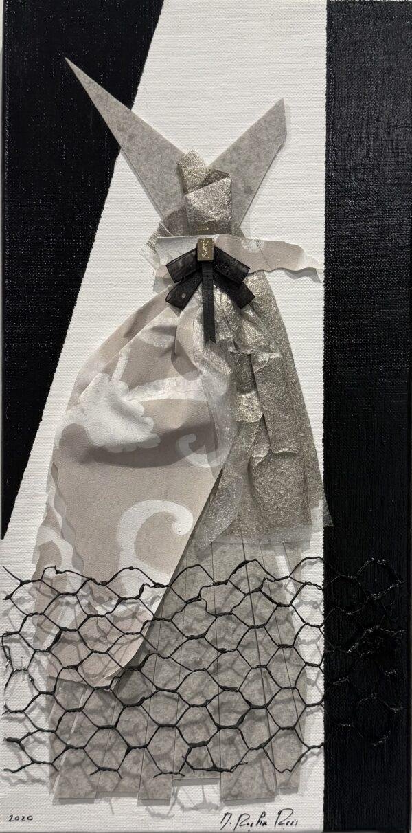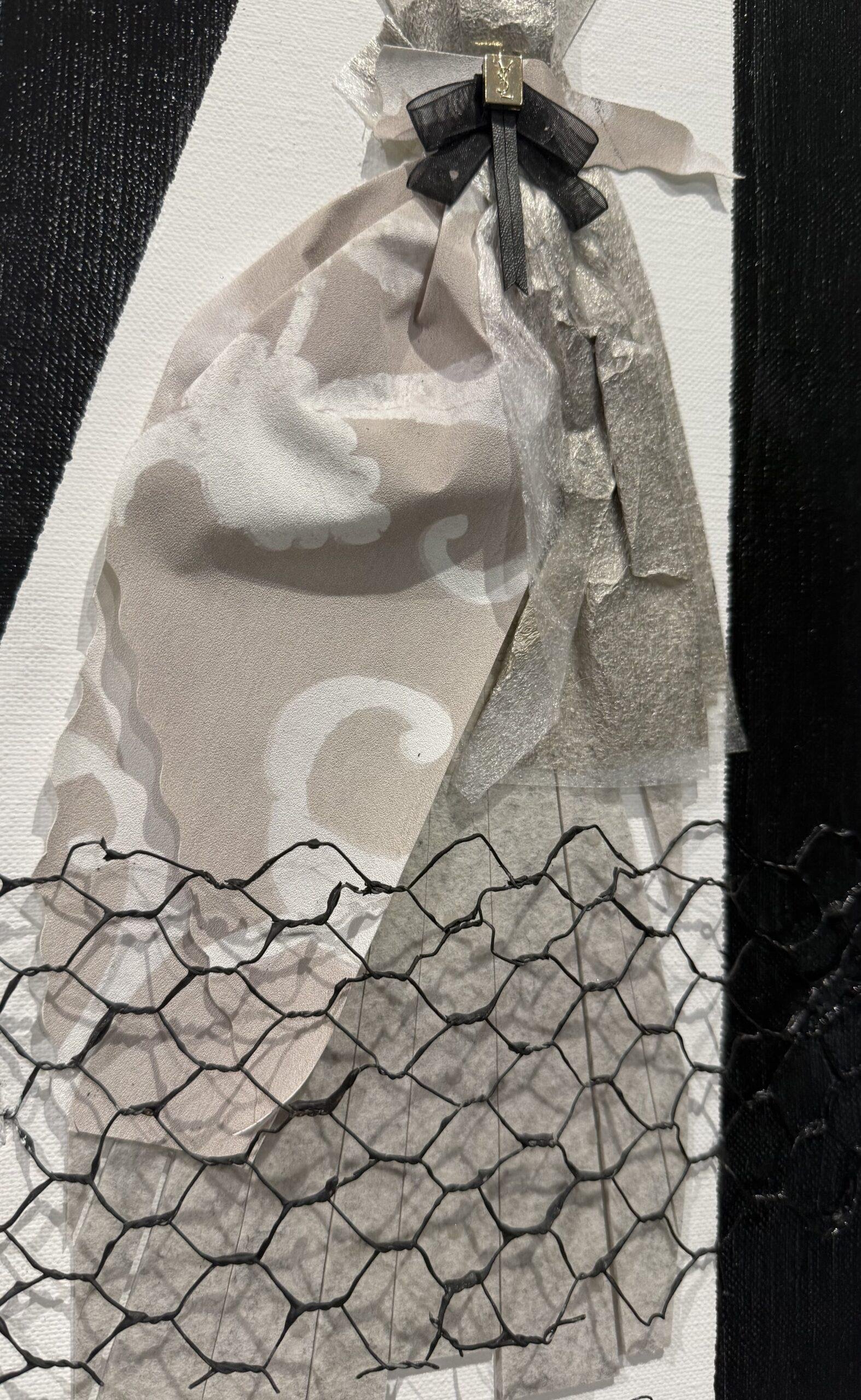 Technique : grillage, acrylique, ruban, papier