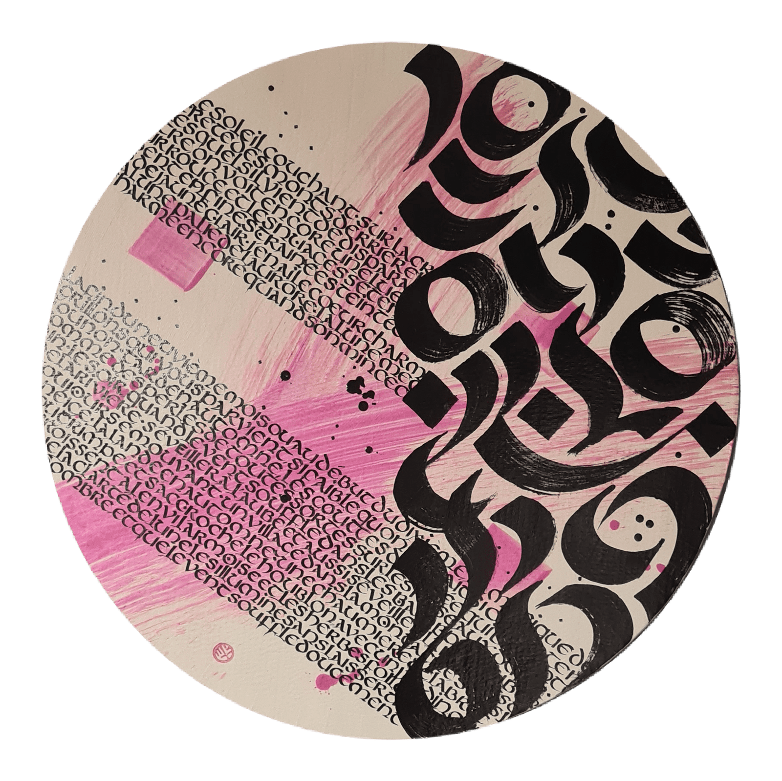 Calligraphie onciale et gestuelle sur carton.