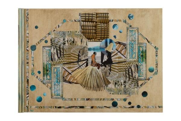 Dim: L 70 X H 50 X Ep. 1 cm, encadré, caisse américaine dorée