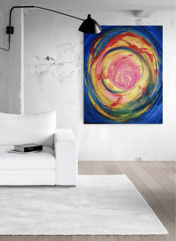 C’est au travers de l’incarnation dans la matière (couleur rouge) et l’énergie physique déployée (couleur jaune), que notre essence d’amour et de cœur (couleurs rose et vert) se révèlent et évoluent.
