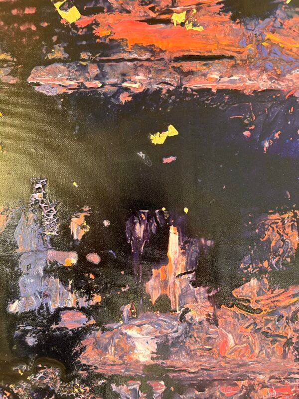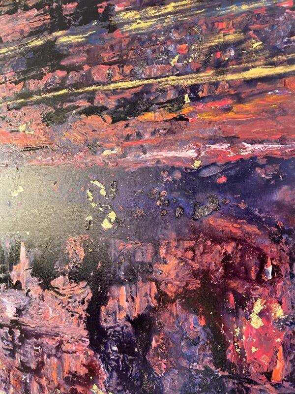 Décembre 2023 – 80cm x 80cm – acryliques, encres acryliques , gesso, feuilles d’or